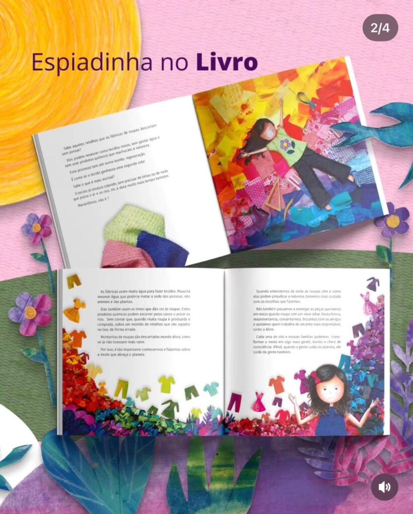 “A história da Aline, aqui na Baixada Santista, é o exemplo vivo da moda regenerativa. Ao apresentar um modelo de negócio que utiliza tecidos sustentáveis, o livro ensina, na prática, o que significa produzir e consumir com responsabilidade. É um convite para que as novas gerações repensem o descarte e valorizem a inovação que preserva o meio ambiente. Por isso, tornar esta leitura acessível à todas as crianças é tão importante.”, conta Addriana.